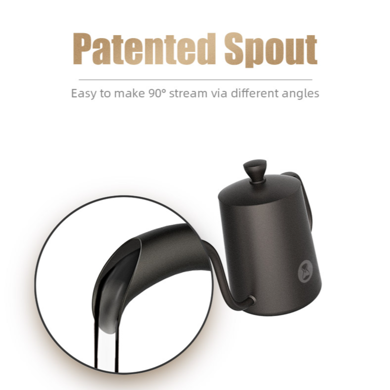 غلاية يدوية صغيرة وعالية الدقة، مثالية لعشاق القهوة المختصة. تصميمها الفريد يجعلها مثالية لتدفق الماء بدقة أثناء تحضير القهوة باستخدام طريقة pour-over.