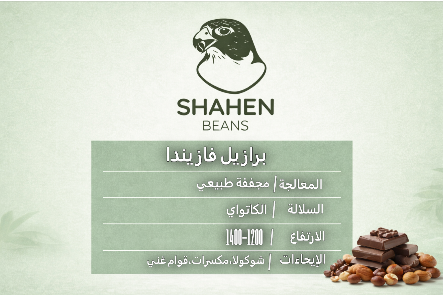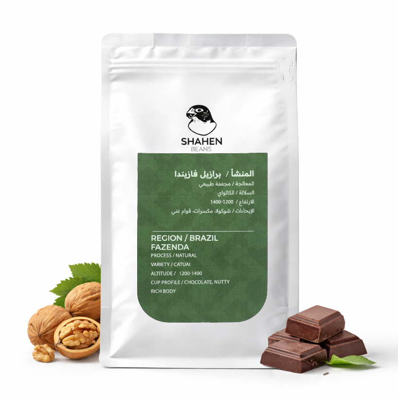 250 غرام — قهوة برازيلية من فازيندا، معالجة مجففة طبيعية من سلالة كاتواي.نكهات الشوكولاتة والمكسرات مع قوام غني.