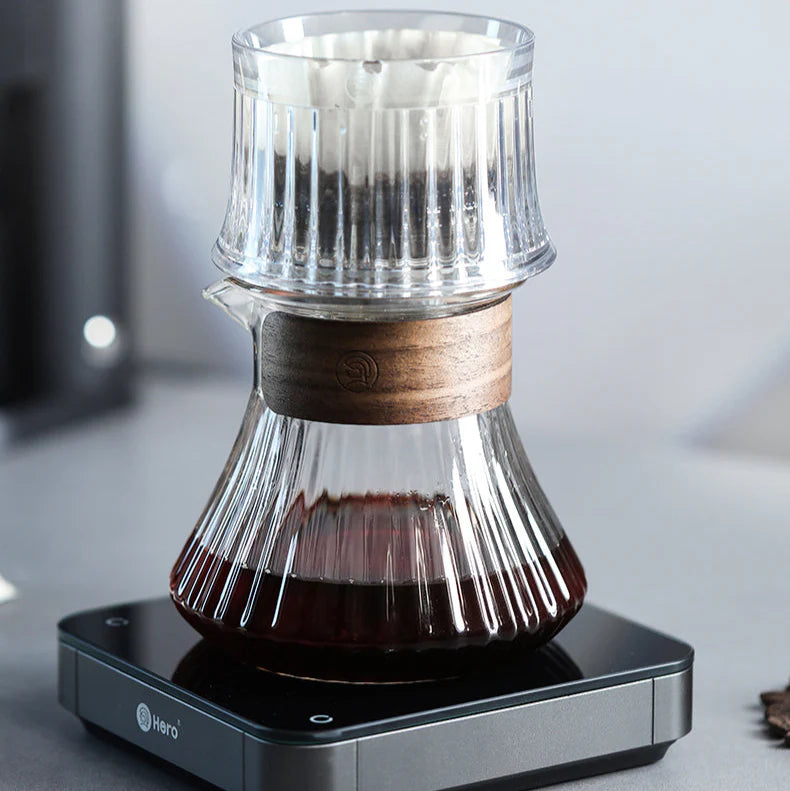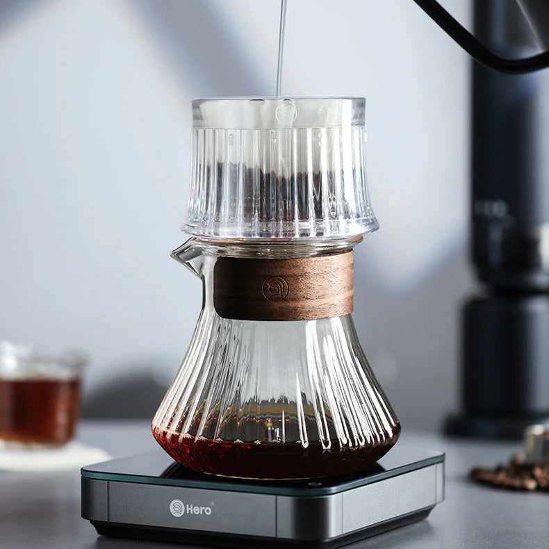 ميزان القهوة الذكي من شركة زيرو هيرو يتميز بتصميم فاخر يجمع بين الزجاج المقسّى والألومنيوم المصقول بتقنية CNC، ومقاوم للحرارة والتلطخ.