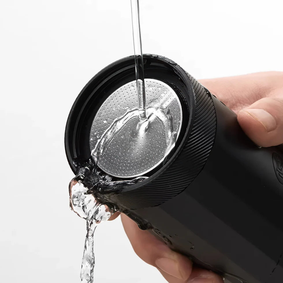 ZeroHero Portable Espresso Machine – 20-bar pressure with 16–18g capacity for rich crema and flavor.