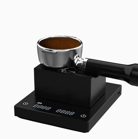 Use the stand to tamp then weigh your espresso in your portafilter.